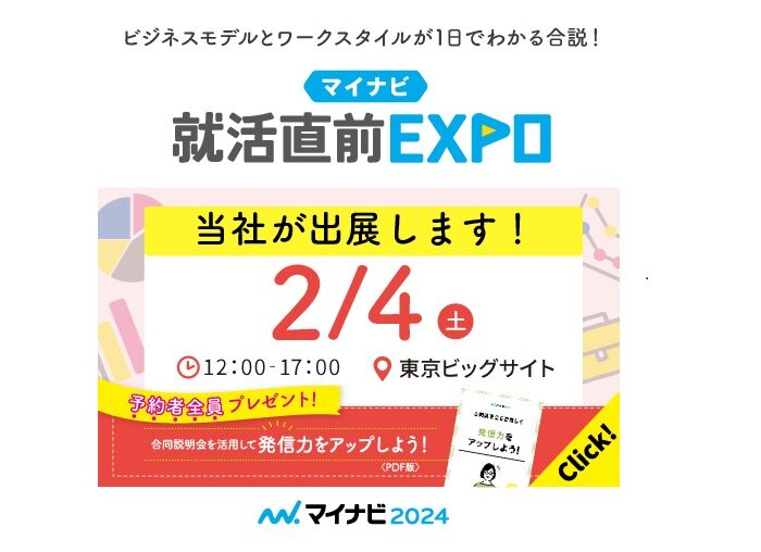 弊社は 2月4日に開催される30入金不要ボーナスナビ就活直前EXPOに出展いたします。