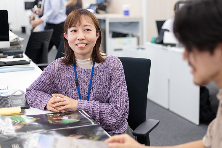 オリジナルブランドの運営に携わっており、製品開発からプロダクトの生産やマーケティング、自社ECやPOPUPイベントでの販売までを幅広く行っています。また、社内外で開かれる展示会の運営や、ライセンスブランドのマーケティング支援など、全社横断型の営業部を支援する事業も平行して担当しています。また、サステナブルな素材の販促や、Z世代とともにサステナビリティ/SDGsについての課題解決を行う共創プロジェクトなどに注力して取り組んでいます。