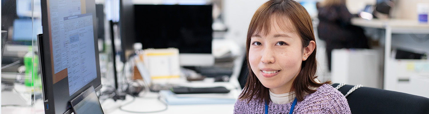繊維商社で働くうえで大事なこととして、コミュニケーションの仲介者となり、周囲の協力/共感を引き出しながら、円滑にプロジェクトを進める力や伝える力が挙げられると思います。人と人との間を繋ぎ調整役を担うことは大変な一面もありますが、実際の商品が出来上がるまでの、企画が実現する過程に立ち会ったときや、奥深い専門知識に触れ、未知の世界を見ることができたときなどに、この仕事の面白さを感じます。一緒に楽しみながら仕事できる仲間が増えることを心待ちにしております。